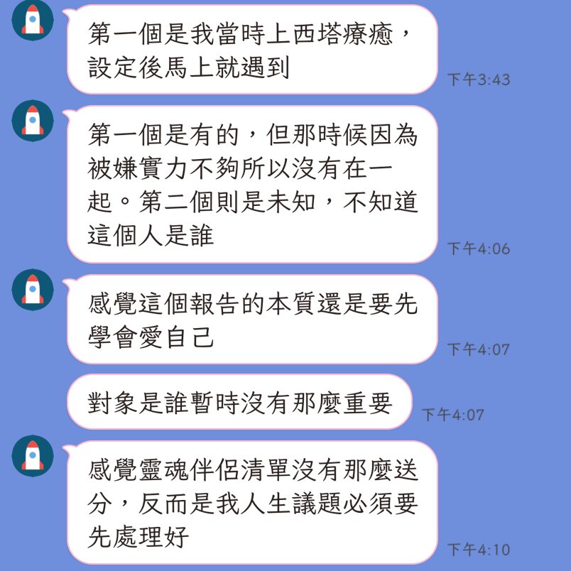 注意:隨著信念的調整及其他療癒修正,吸引到的靈魂伴侶數目與類型、人選均可能產生變化,此為當下連結所獲得的資訊,仍然可以用伴侶清單的方式去訂做並顯化理想伴侶,若為文字檔案提供一次詢問問題機會,做補充答覆。