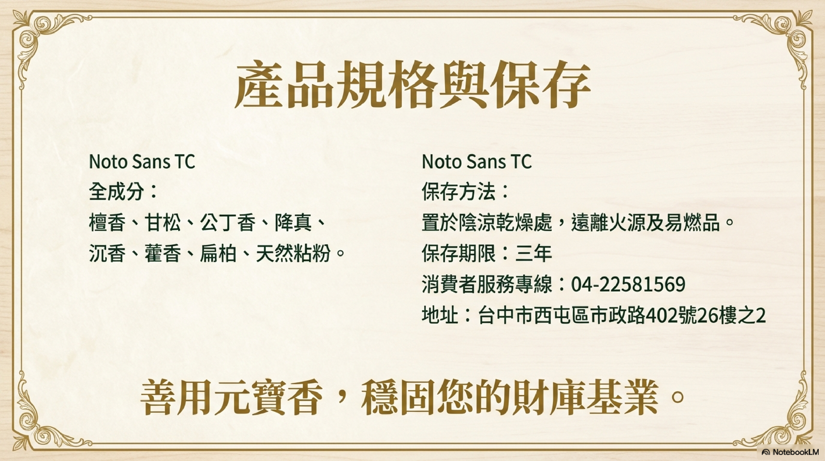 「招財元寶香」配方更為精簡且凝練。